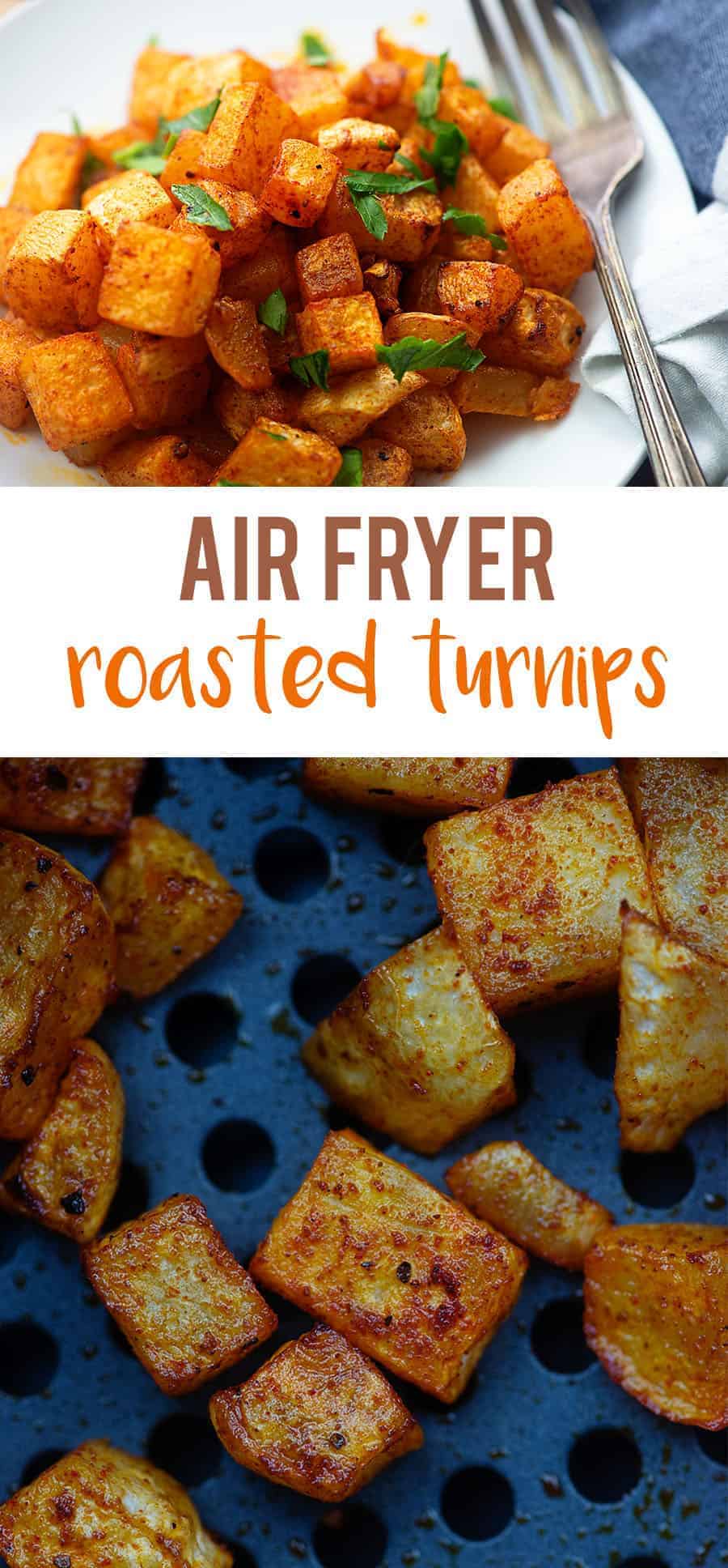 I busted out the air fryer for this recipe, because I love how quickly it cooks things and how easy it is to use without heating up the whole oven/kitchen, but I’m also including instructions for roasting turnips in the oven below. Check the recipe card for details!