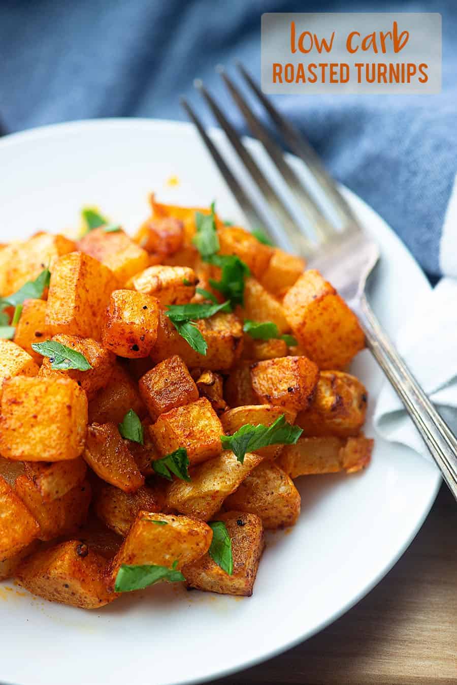 We just had turnips (a first for us!) last Sunday for breakfast, I diced them & seasoned them exactly like you did but I pan fried them. It took forever & they still weren’t quite as done as I would have liked so I am trying your roast in the oven method next. Even with them not being quite done we were so impressed! My hubby has missed his spuds for breakfast I think 🙂 We will for sure be trying them again, what a great find!